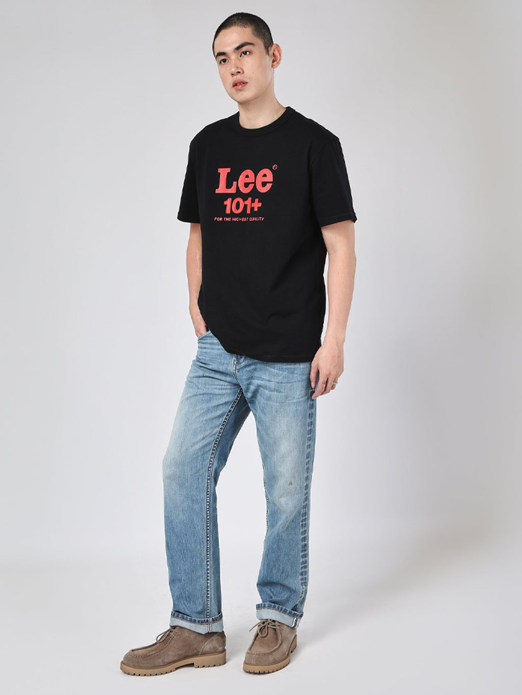 101 Collection Dean Fit Mid Regular Men's Jeans Light Indigo color. From 101 Collection It is made of 85% Cotton 15% Polyester Straight-leg fit with a clean, classic silhouette. Made from premium denim with Lee’s signature label and stitching—perfect for a modern classic look suitable for both casual and smart-casual wear.