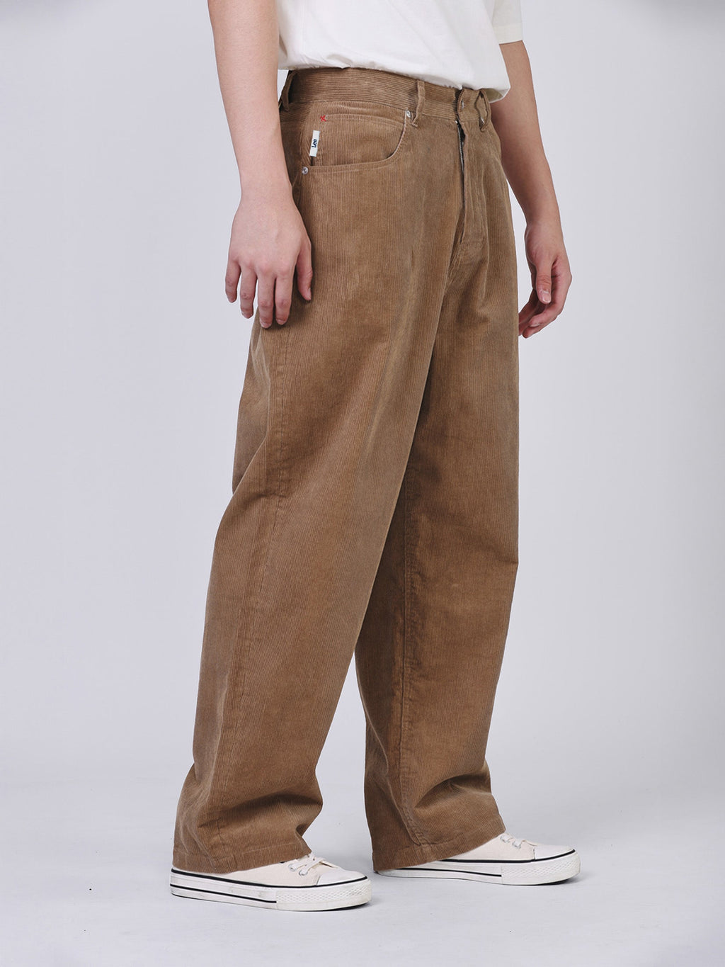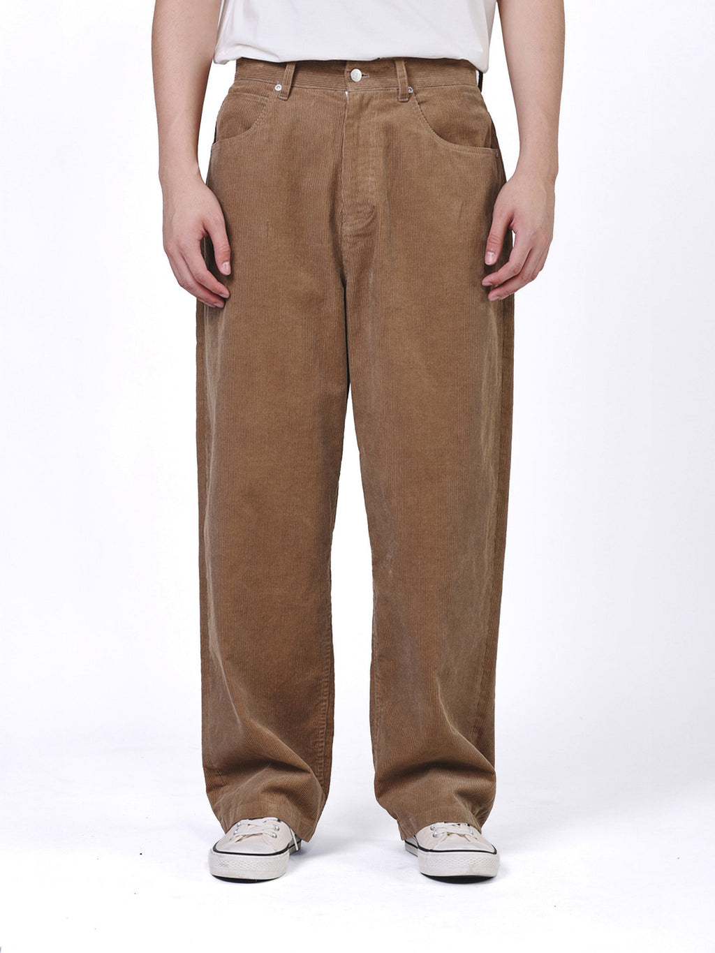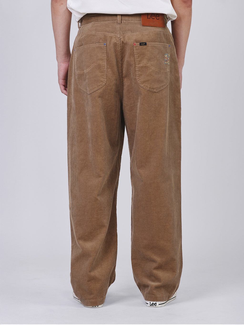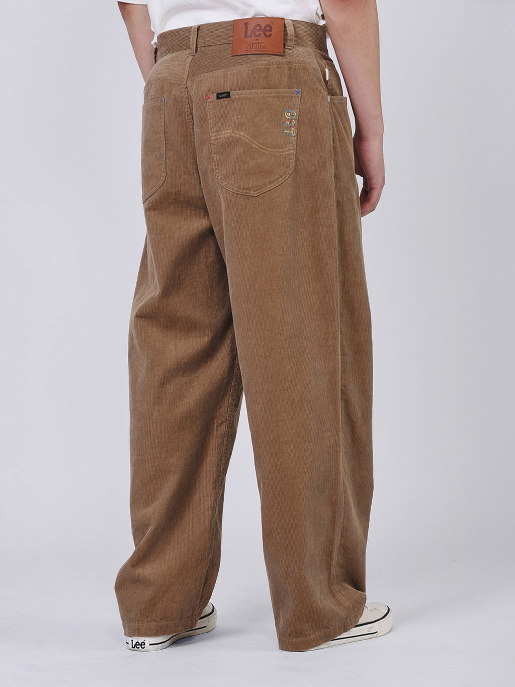 กางเกงขายาวลูกฟูกผู้ชาย คอลเลคชั่น LEE X AKID FROM YESTERDAY BAGGY FIT เอวสูง ทรงกระบอกใหญ่ สีเบจ
