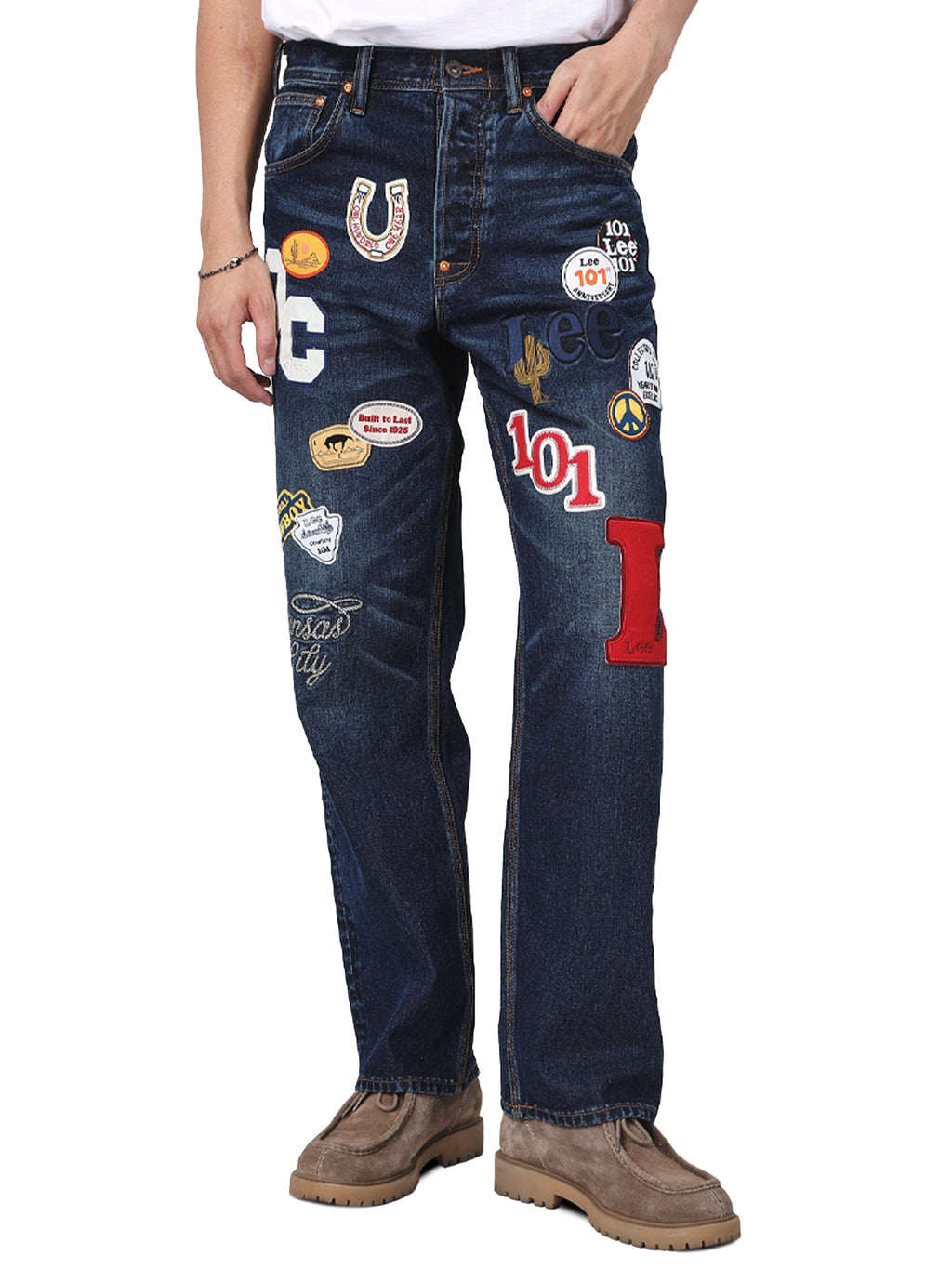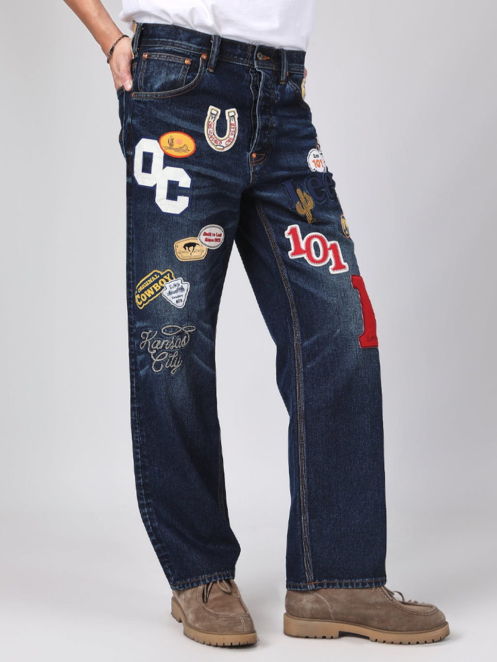 กางเกงยีนส์ผู้ชาย คอลเลคชั่น 101 Retro Straight Fit เอวสูง ทรงกระบอก สียีนส์เข้ม ผลิตจาก 91% คอตตอน 9% โพลีเอสเตอร์ ผ้าเดนิมที่ทอด้วยโครงสร้าง Left-hand Twill (LHT) ลายทอจะพาดจาก ซ้ายล่างไปขวาบนผ้าจะให้สัมผัส นุ่มและเรียบกว่า เมื่อใส่ไปสักระยะ ผสมเทคนิค Patch + Stitching เพิ่มมิติและพื้นผิวให้ตัวกางเกง ลวดลายได้แรงบันดาลใจจากวินเทจ / workwear แต่ละตัวให้ฟีลไม่ซ้ำ ดูมีเอกลักษณ์และสะดุดตา
