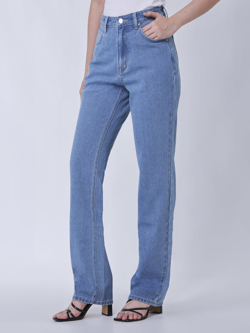 กางเกงยีนส์ผู้หญิง Straight Fit เอวกลาง ทรงตรง สียีนส์อ่อน ผลิตจาก คอตตอน 100% ผ้ายืดนุ่ม ใส่สบายทั้งวัน ไม่รัด ไม่อึดอัด เก็บทรงสวยดูเพรียว เข้ากับทุกลุค จะชิลหรือเท่ก็รอด ตัดเย็บเนี้ยบ ดีเทลเป๊ะ ใส่แล้วมั่นใจ ดูดีทุกมุม