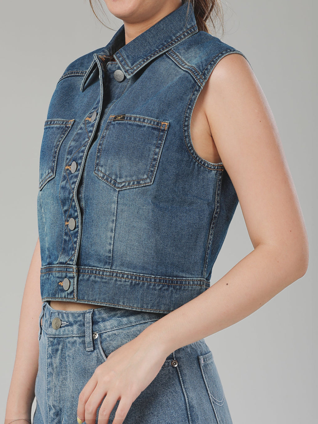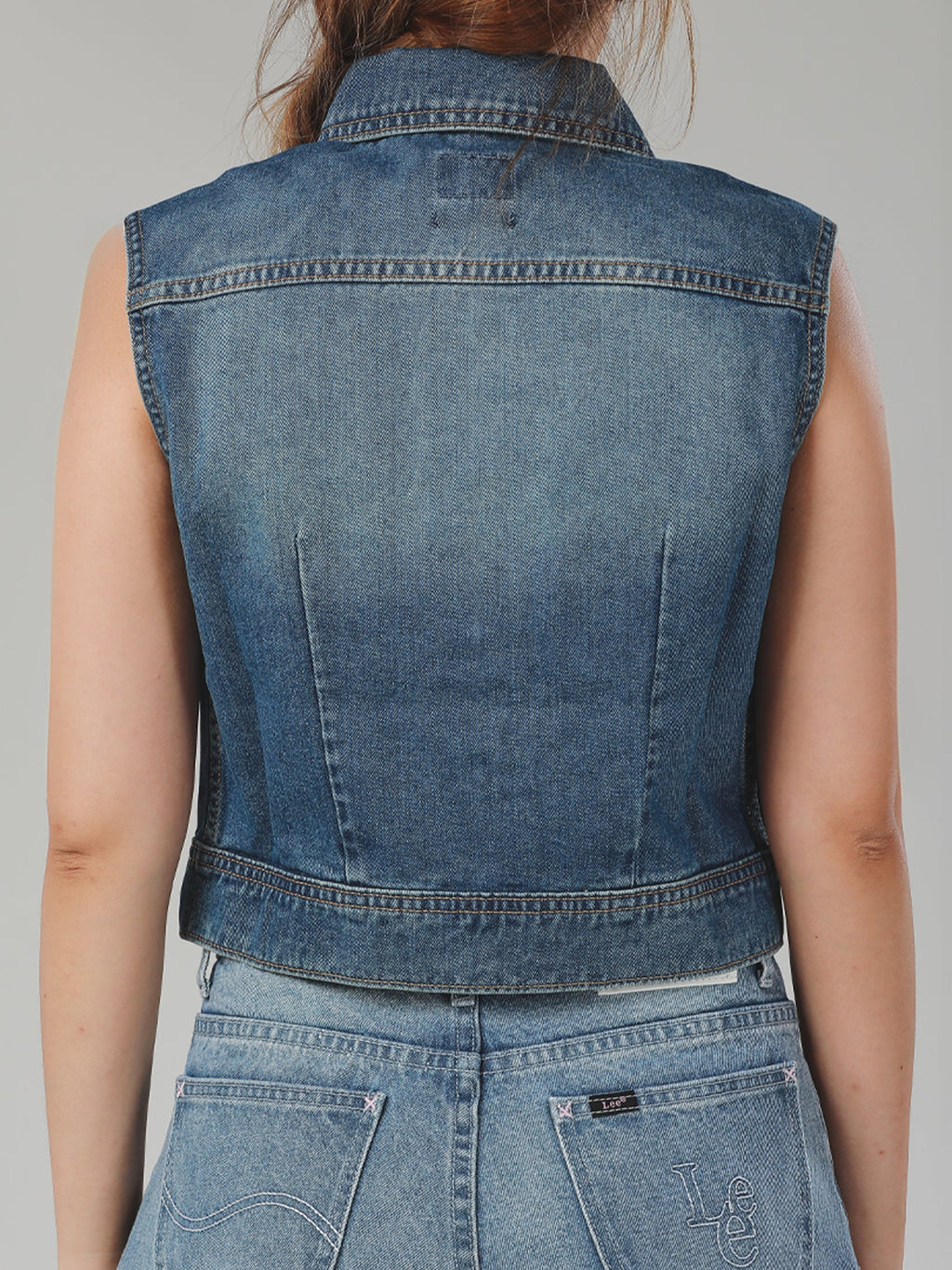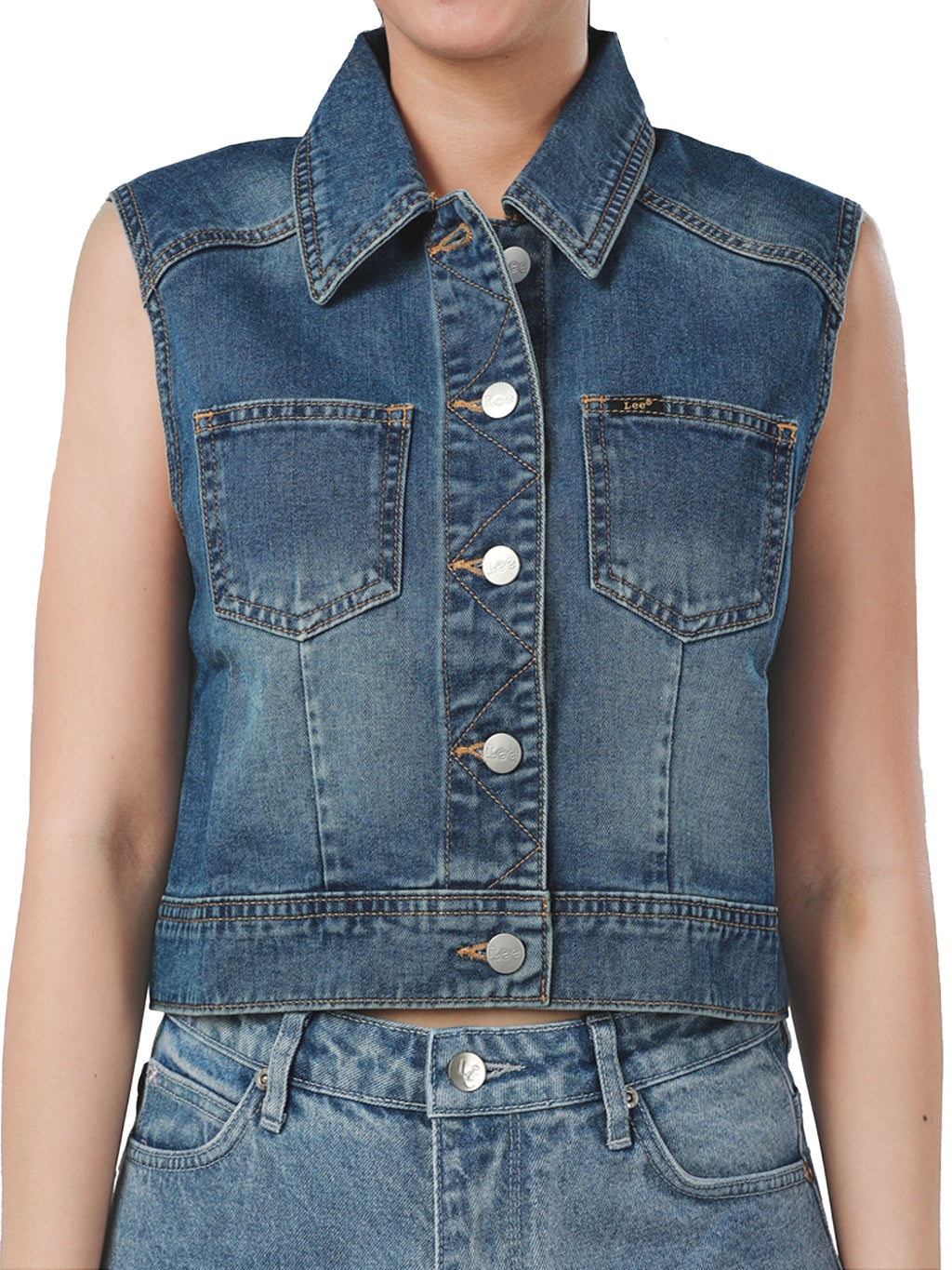 เสื้อกั๊กผู้หญิง ทรง Cropped สียีนส์กลาง จากคอลเลคชั่น Winter Love Lee ผลิตจากคอตตอน 100% (12 ออนซ์) สวมใส่สบาย เคลื่อนไหวคล่องตัว ให้ลุคสาวเท่ มีคลาส และสไตล์โดดเด่น เพิ่มความมั่นใจในการแต่งตัวด้วยคอลเลคชั่น Winter Love Lee เครื่องแต่งกายของ Lee ขึ้นชื่อด้านคุณภาพที่สูง คัดสรรวัสดุอย่างดีในการผลิต อีกทั้งยังมีดีไซน์ที่ทันสมัย สวยงาม