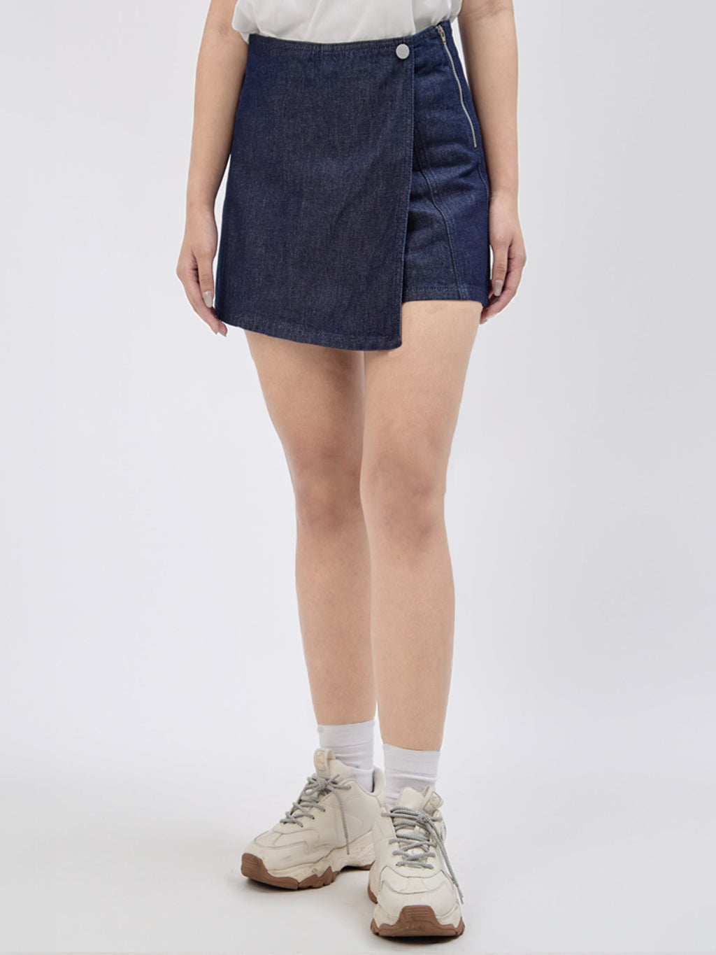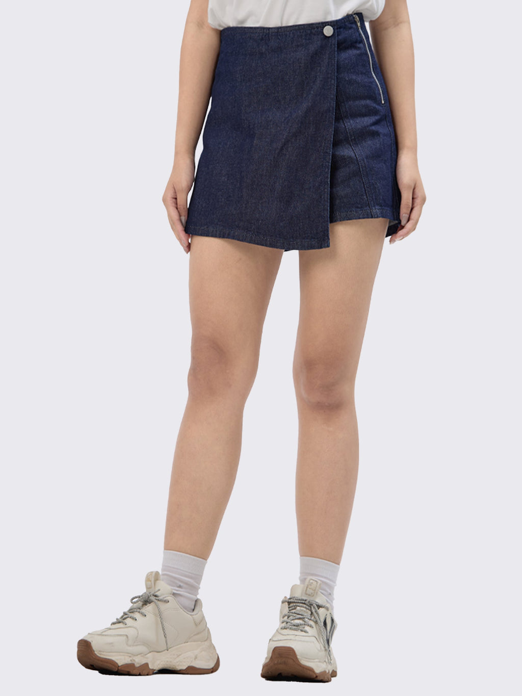 กระโปรงกางเกงขาสั้นผู้หญิง สียีนส์เข้ม ผลิตจาก 85% คอตตอน 15% โพลีเอสเตอร์ เนื้อผ้ายืดหยุ่น สวมใส่สบาย ระบายอากาศได้ดี ดูแลรักษาง่าย เหมาะสำหรับสวมใส่ในที่แจ้ง เช่นการเดินป่า, เดินสวน เล่นกีฬา หรือทำกิจกรรมต่างๆ